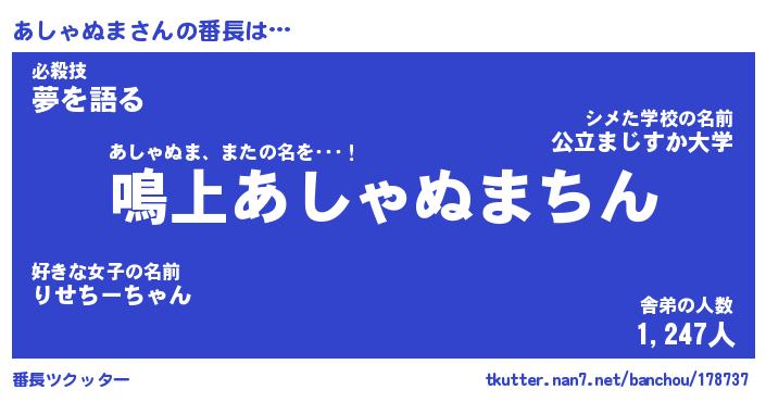 | 肩書あだ名 | 『あしゃぬま御曹司』『あしゃぬま団長』 |