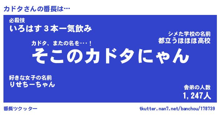 | ポケモン風あだ名 | 『カドチュウ』『カドタダネ』 |