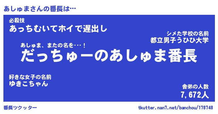 | 肩書あだ名 | 『あしゅま店長』『あしゅま国家主席』 |
