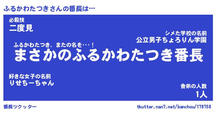 | 男性向けラノベタイトル風あだ名 | 『ふるかわたつきの憂鬱』 |