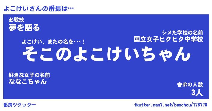 | 意味不明あだ名 | 『ペロリンよこけい』『永久保存よこけい』 |