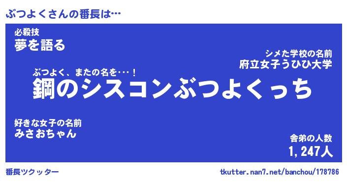 | ポケモン風あだ名 | 『ブツチュウ』『ブツヨダネ』 |