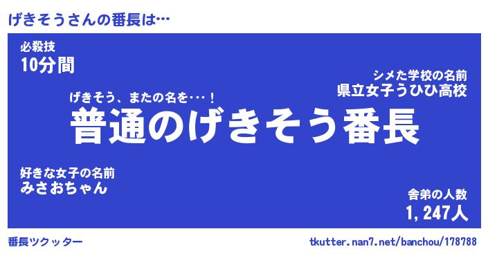 | ヒーロー風カッコイイあだ名 | 『スーパーゲキソウ』『銀牙騎士ゲキ』 |