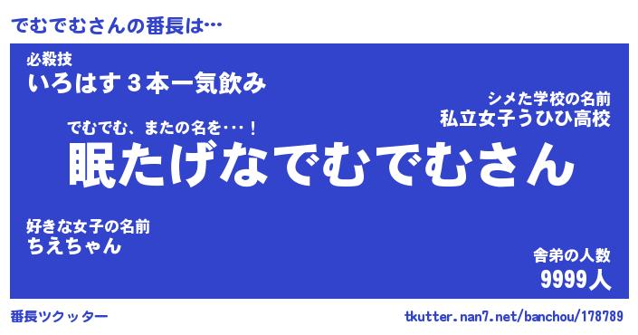 | 2回繰り返すあだ名 | 『でむでむ』『ででむむ』 |