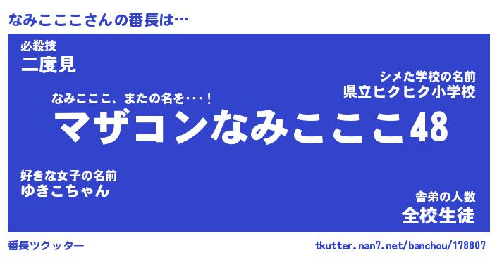 | ヘコむあだ名 | 『なみっふぃ~』『なまこ酢』 |