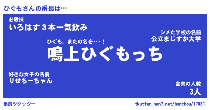 | 伝説のあだ名 | 『封印されしスナイパーひぐも』 |