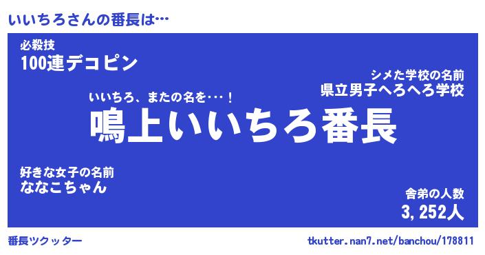 | 意味不明あだ名 | 『ペロリンいいちろ』『永久保存いいちろ』 |