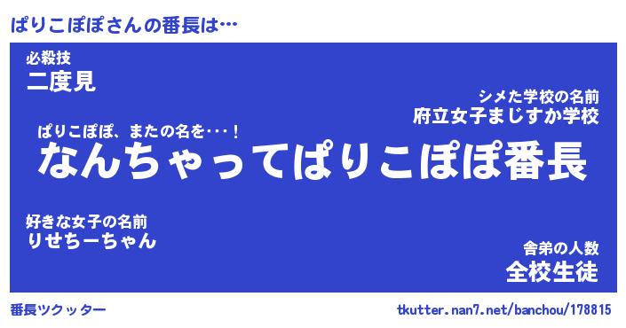 | 意味不明あだ名 | 『ペロリンぱりこぽぽ』 |