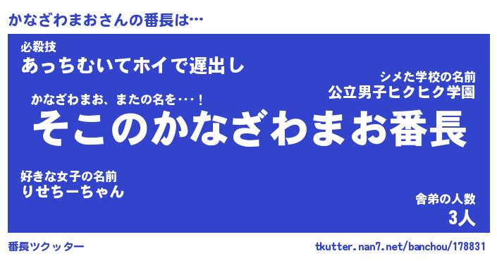 | 肩書あだ名 | 『かなざわまおCEO』『かなざわまお副担任』 |