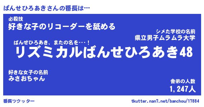 | 肩書あだ名 | 『ばんせひろあき店長』 |