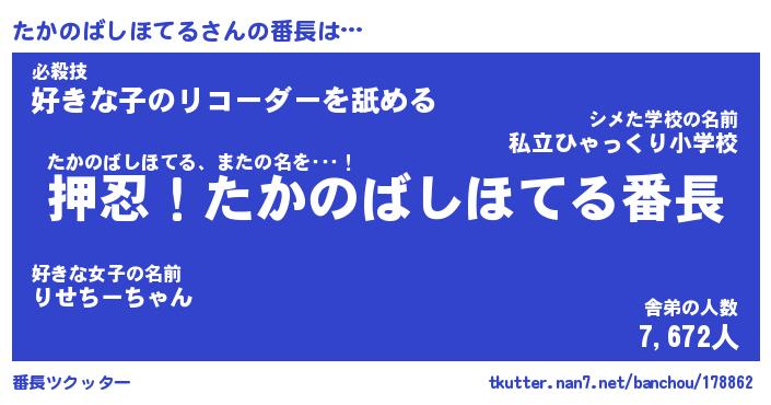 | 肩書あだ名 | 『たかのばしほてる店長』 |