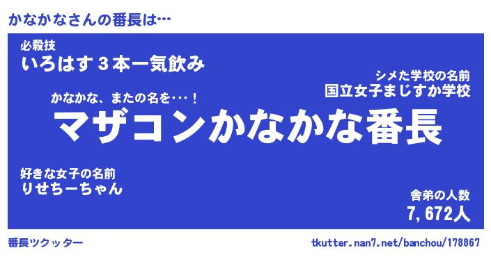 | 意味不明あだ名 | 『ペロリンかなかな』『永久保存かなかな』 |