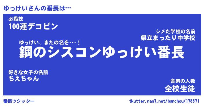| 意味不明あだ名 | 『ペロリンゆっけい』『永久保存ゆっけい』 |