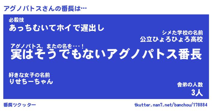 | 肩書あだ名 | 『アグノパトス社長』『アグノパトス塾長』 |