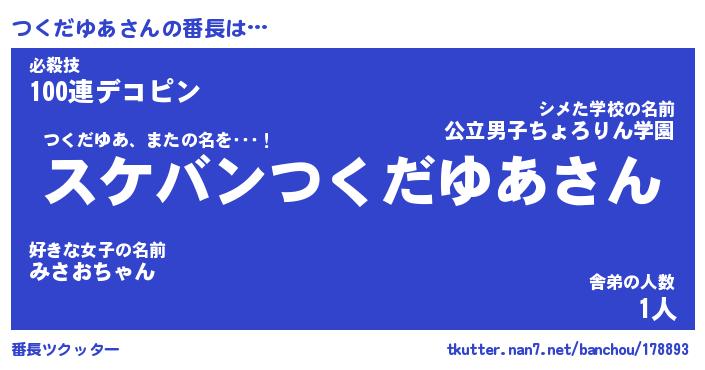 | ヒーロー風カッコイイあだ名 | 『スーパーツクダユア』『黄金騎士ツク』 |