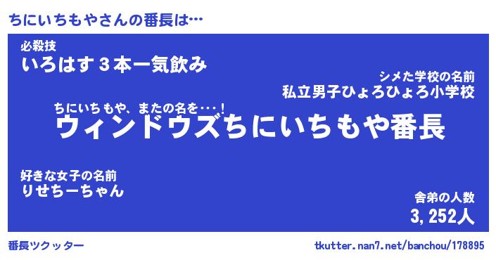 | 肩書あだ名 | 『ちにいちもや社長』『ちにいちもや班長』 |