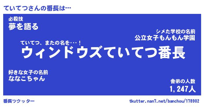 | ポケモン風あだ名 | 『テイチュウ』『テイテダネ』 |
