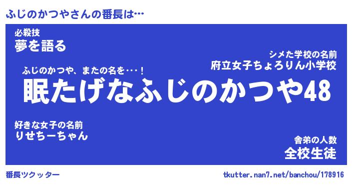| 肩書あだ名 | 『ふじのかつや御曹司』 |