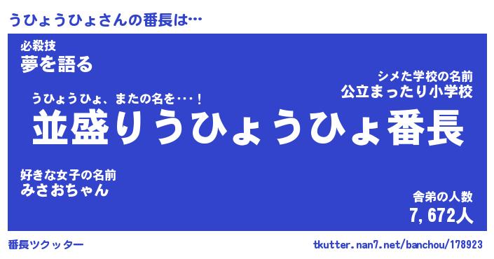| ピコ太郎風あだ名 | 『ウコ六郎』『ピウ四郎』『ウヒ四郎』 |