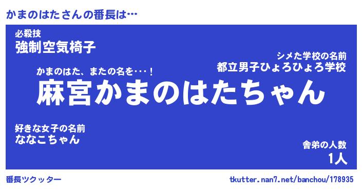 | 欧米人風あだ名 | 『マイケルかまのはた』 |