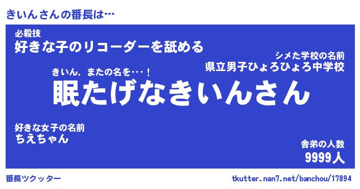 | ヒーロー風カッコイイあだ名 | 『スーパーキイン』『ウルトラきいんマン』 |