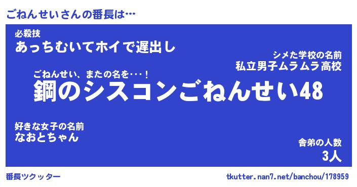 | ヘコむあだ名 | 『ごねにゅー』『酢こんぶ』『ごねを』 |