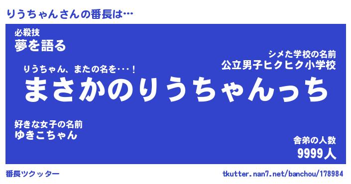 | 意味不明あだ名 | 『ペロリンりうちゃん』 |