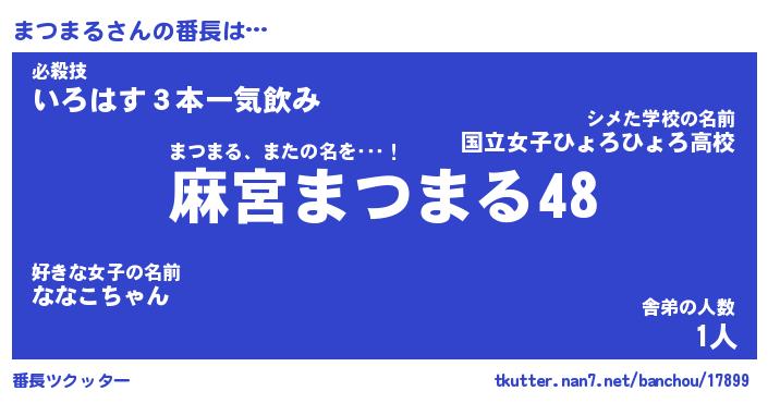 | 意味不明あだ名 | 『ペロリンまつまる』『永久保存まつまる』 |