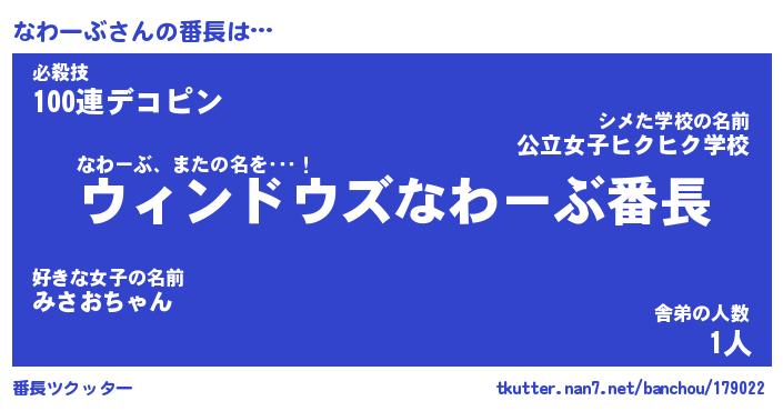| 意味不明あだ名 | 『ペロリンなわーぶ』『永久保存なわーぶ』 |