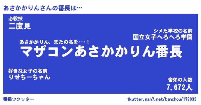 | ヒーロー風カッコイイあだ名 | 『スーパーアサカカリン』『炎刃騎士アサ』 |