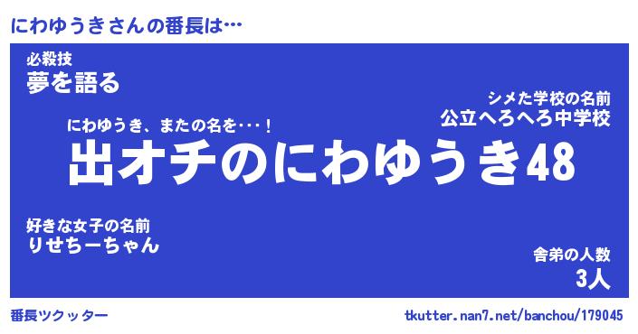 | ファンタジー風あだ名 | 『ニワフェル』『エターナルニワユウキー』 |
