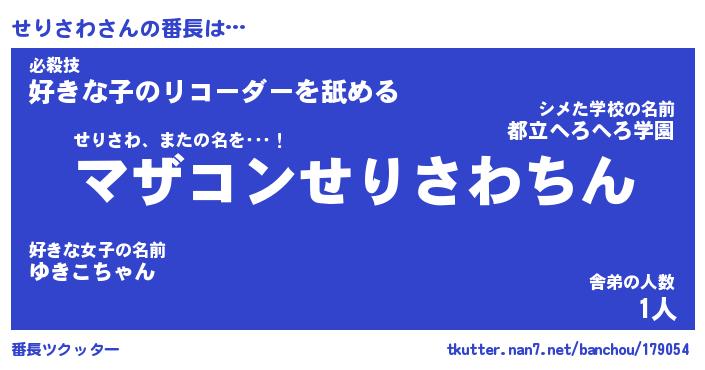 | 意味不明あだ名 | 『ペロリンせりさわ』『永久保存せりさわ』 |