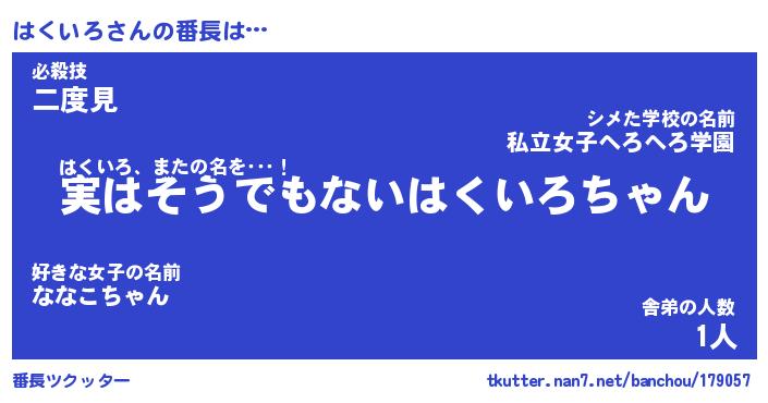 | ヒーロー風カッコイイあだ名 | 『スーパーハクイロ』『黄金騎士ハク』 |