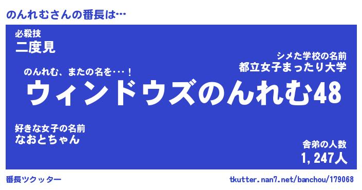 | 意味不明あだ名 | 『ペロリンのんれむ』『永久保存のんれむ』 |