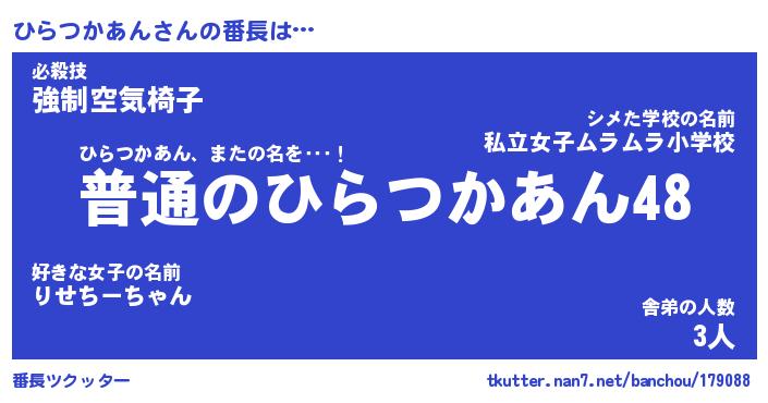 | ヒーロー風カッコイイあだ名 | 『スーパーヒラツカアン』『幻影騎士ヒラ』 |