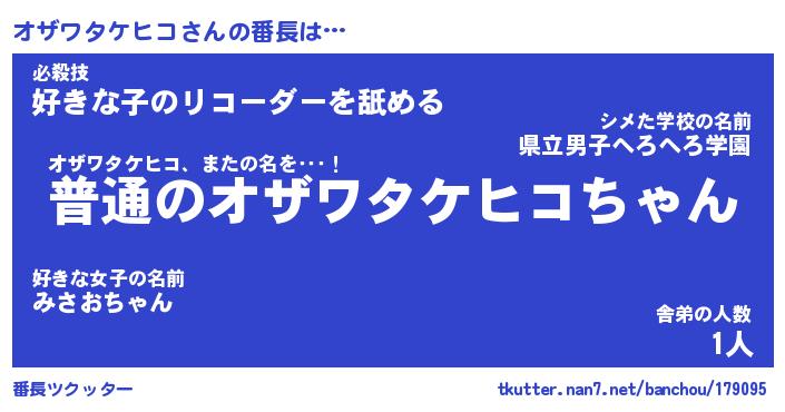 | ポケモン風あだ名 | 『オザチュウ』『オザワダネ』 |