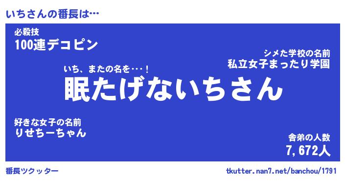 | 意味不明あだ名 | 『ペロリンいち』『いちフォーエバー』 |