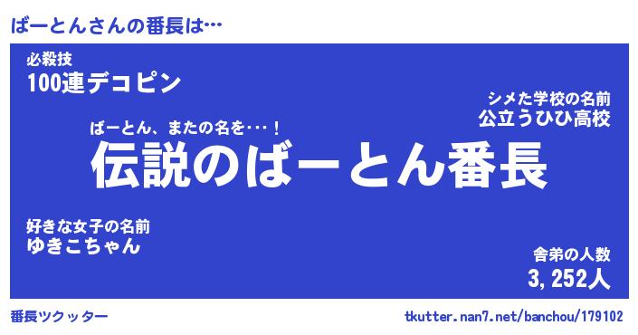 | 伝説のあだ名 | 『伝説のスナイパーばーとん』 |