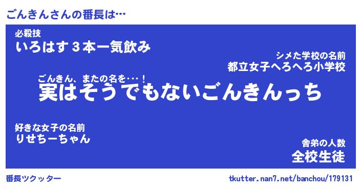 | ヘコむあだ名 | 『ごんにー』『牛乳』『ごんぷりん』 |