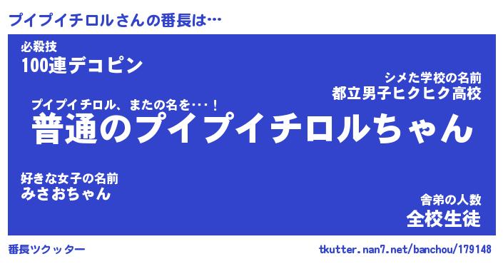 | 男性向けラノベタイトル風あだ名 | 『プイプイチロルの憂鬱』 |