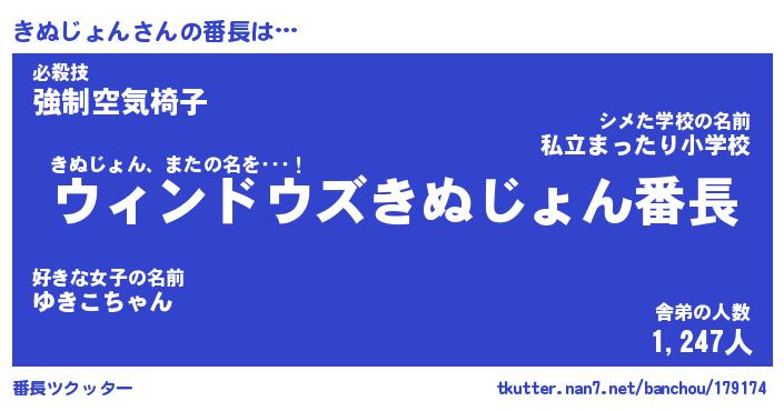 | 肩書あだ名 | 『きぬじょん御曹司』『きぬじょん校長』 |