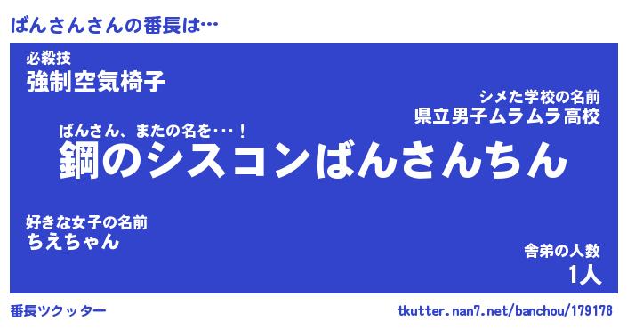 | 意味不明あだ名 | 『ペロリンばんさん』『永久保存ばんさん』 |