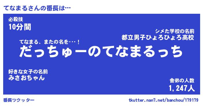 | ヘコむあだ名 | 『てなにゅー』『つくし』『てなお』 |