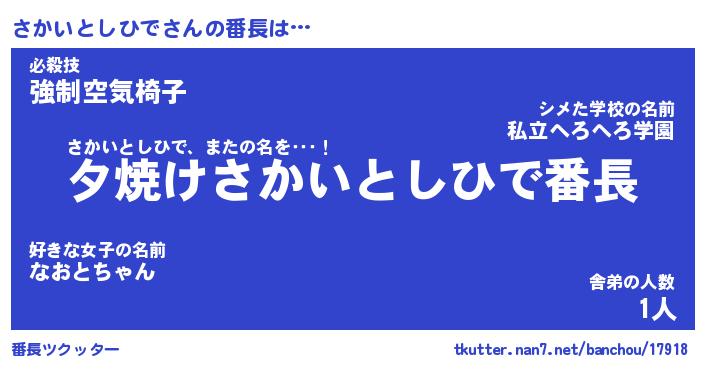 | ヒーロー風カッコイイあだ名 | 『スーパーサカイトシヒデ』 |