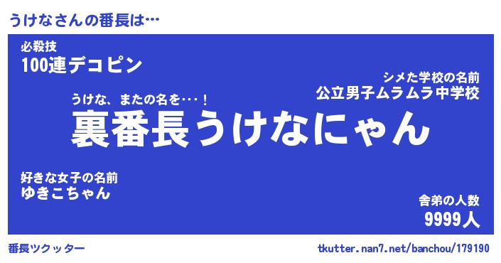 | 意味不明あだ名 | 『ペロリンうけな』『うけなフォーエバー』 |