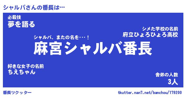 | 意味不明あだ名 | 『ペロリンシャルバ』『永久保存シャルバ』 |