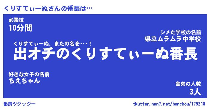 | ヘコむあだ名 | 『くりにー』『牛乳』『くりを』 |