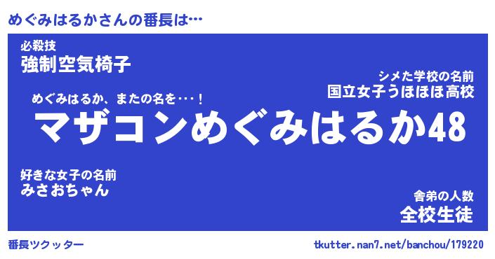 | 恥ずかしいあだ名 | 『プリティーめぐみはるか』『めぐっちょ』 |
