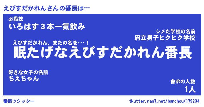 | ヘコむあだ名 | 『えびもー』『なまこ酢』『えび太郎』 |
