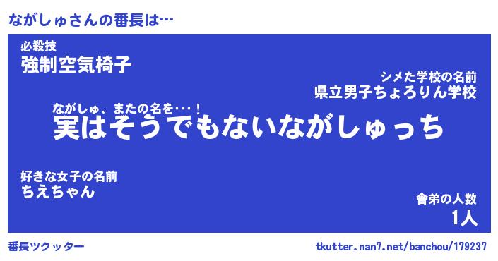 | 意味不明あだ名 | 『ペロリンながしゅ』『永久保存ながしゅ』 |